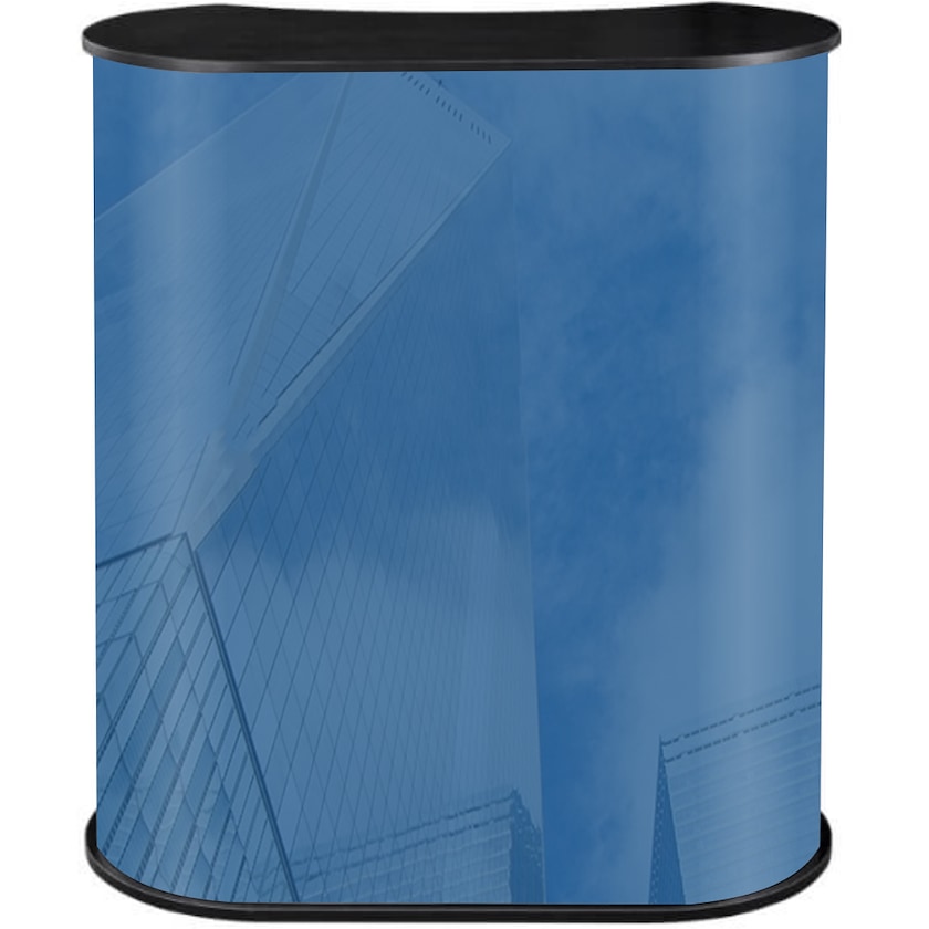 Table de salon populaire de forme incurvée. Expo Curved a une construction intelligente avec un plateau en bois et un fond en PVC recouvert de Velcro. L'impression s'effectue sur un film laminé qui est placé sur le dessous. Le film laminé peut être brillant ou mat. La table d'exposition se transporte facilement dans le sac inclus.