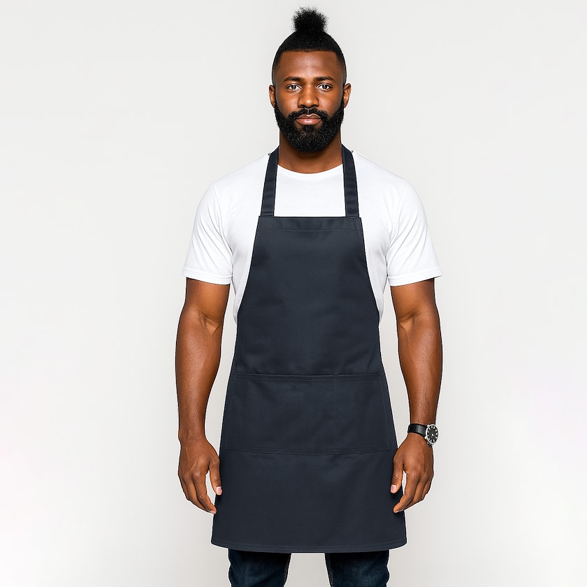 Tablier de haute qualité en coton biologique. La bandoulière est réglable. Une grande poche à deux compartiments est située à l'avant. Le tissu pèse 240 g/m² et est certifié OEKO-TEX® STANDARD 100.