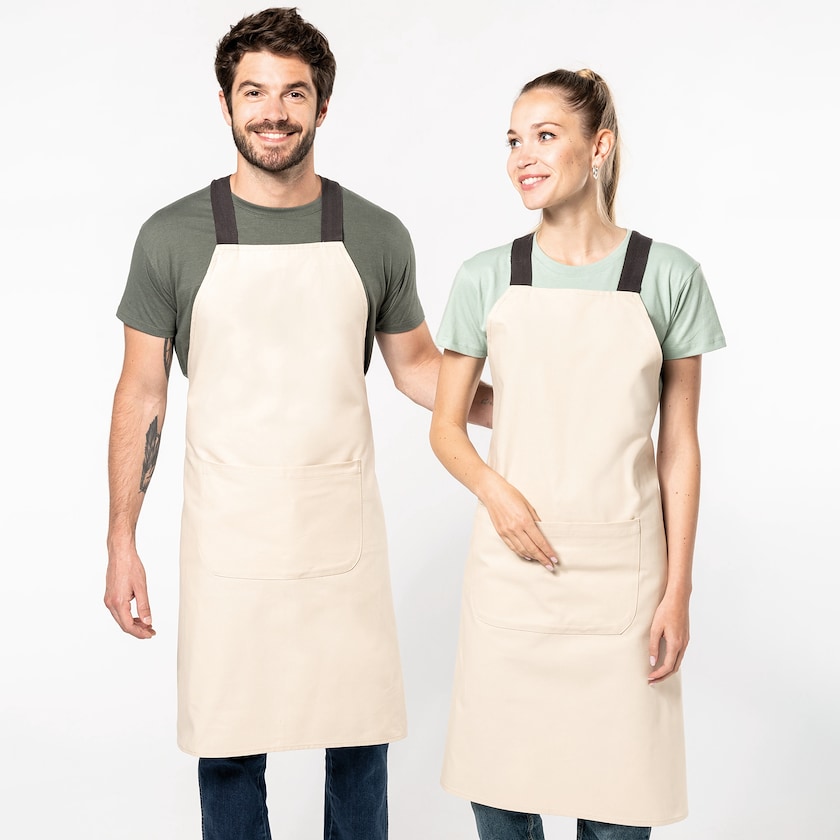 Tablier en tissu résistant 100% coton écologique. Le tissu a reçu un traitement spécial pour une apparence légèrement usée. Cela signifie que la couleur du tissu pourra varier d'un exemplaire à l'autre. Le tablier fait 90 cm de long et 76 cm de large.
