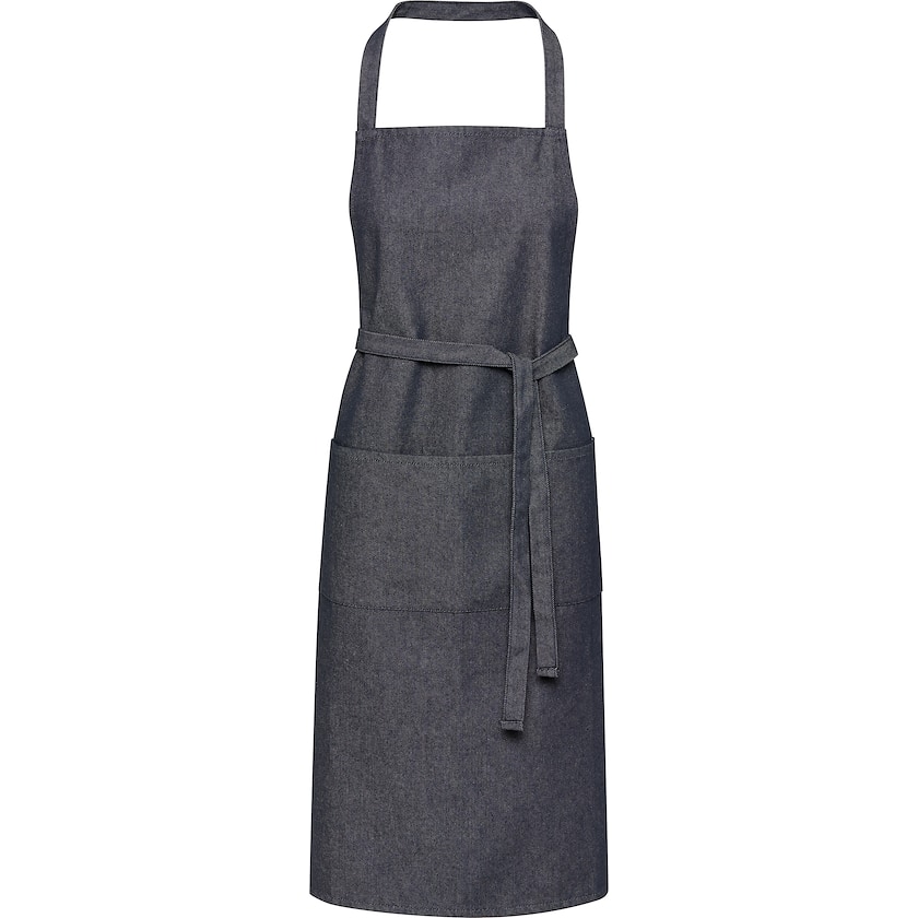 Tablier écologique pouvant être imprimé ou brodé. Le tablier est fait d'un tissu durable composé à 70 % de coton recyclé et à 30 % de polyester recyclé.