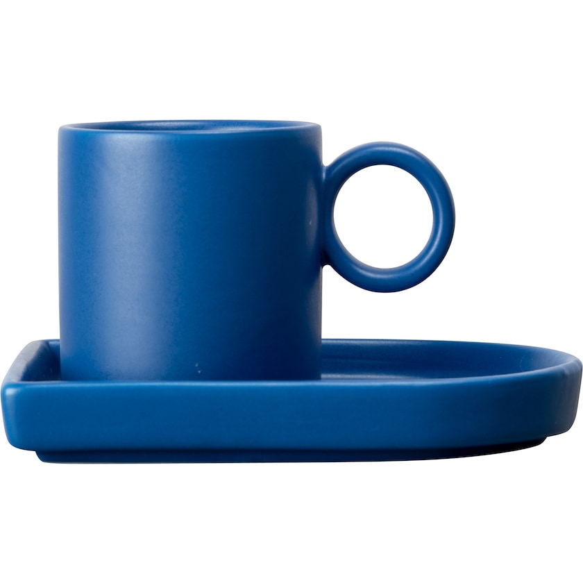 Tasse espresso avec soucoupe au design espiègle. Le set est fabriqué en porcelaine de haute qualité. Son design minimaliste combiné à son anse surdimensionnée lui donne une apparence espiègle.