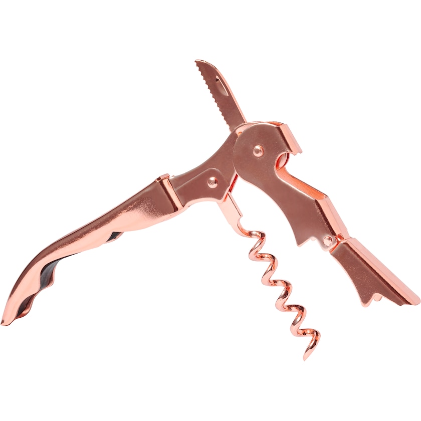 Ouvre-bouteille en acier inoxydable avec placage en cuivre élégant. Le marquage se fait par gravure laser.