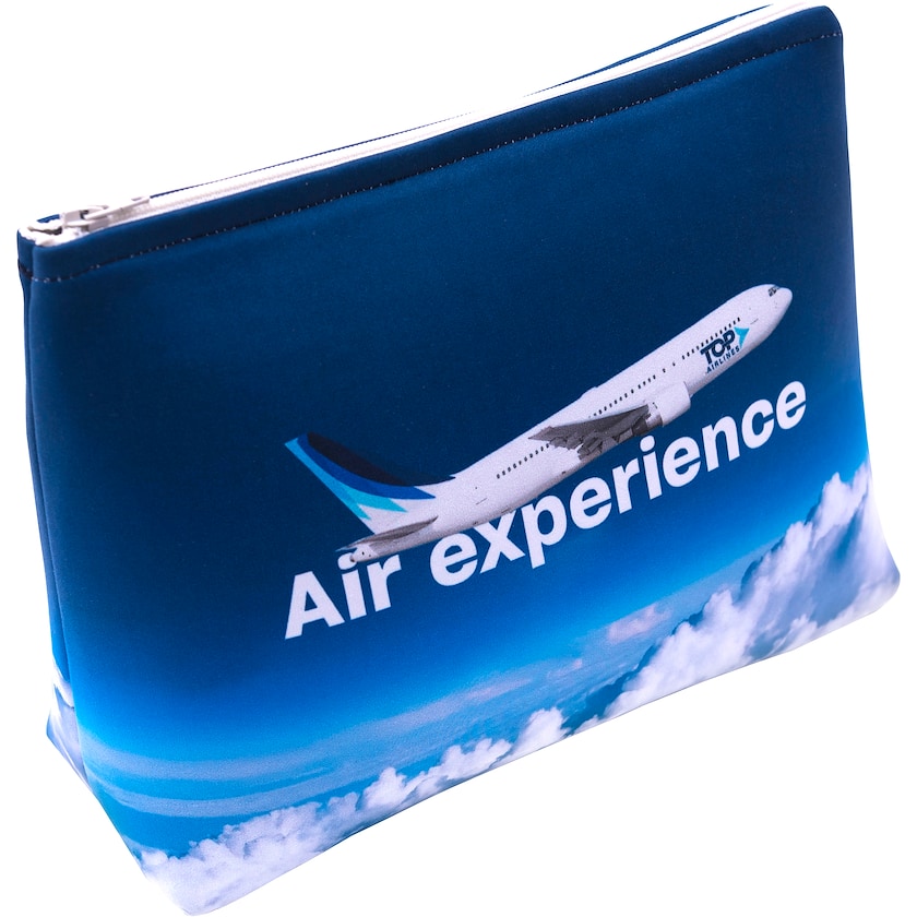 Trousse de toilette avec extérieur marqué par impression 4 couleurs Rio est fabriquée dans un matériau lavable à la surface agréablement douce. Téléchargez le template et donnez un design unique à votre trousse de toilette!