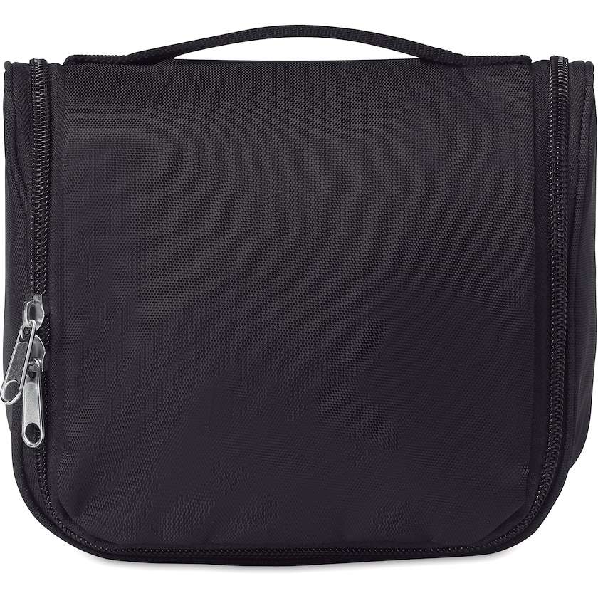 Trousse de toilette accrochable avec plusieurs compartiments et une poche filet intérieure. Une trousse de toilette de haute qualité à un prix attractif.