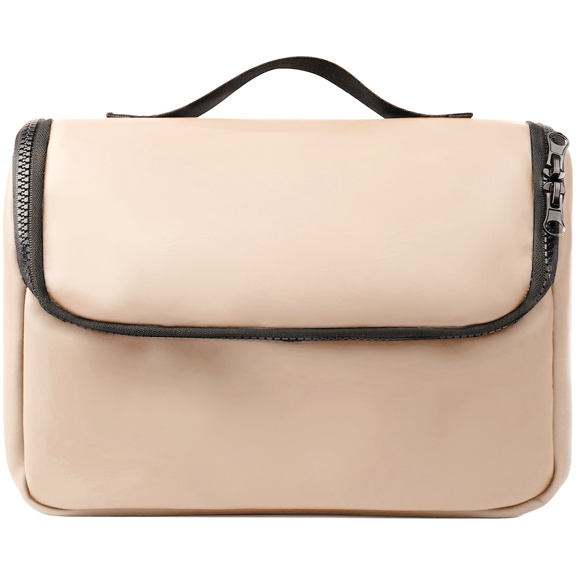 Trousse de toilette en cuir synthétique hydrofuge. Le matériau est facile à nettoyer. L'intérieur offre plusieurs poches pour les petits objets. La trousse de toilette est équipée d'un crochet qui permet de l'accrocher facilement.