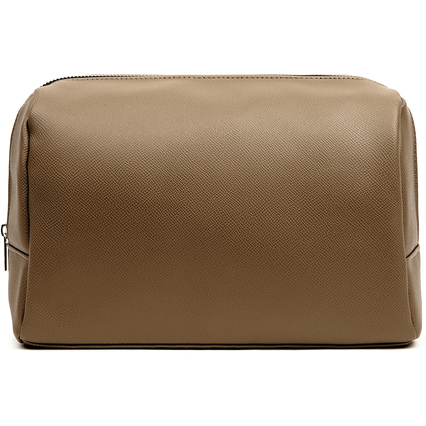 Trousse de toilette au design intemporel. L'extérieur est en cuir artificiel recyclé. Grâce à la longue fermeture éclair, il est facile d'accéder au contenu.