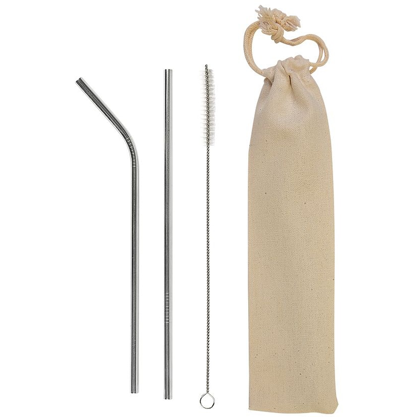 Set de deux pailles en acier inoxydable avec brosse de nettoyage. Le set est livré dans un sac en coton couleur nature. La personnalisation est réalisée sur le sac en coton.