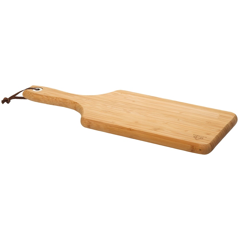 Planche à découper haut de gamme du fabricant français Diamant Sabatier. La Blois est fabriquée dans un beau bambou résistant. La planche à découper est polie, ce qui la rend facile à nettoyer et à garder propre. L'anse est pourvue d'un cordon en cuir avec un anneau en métal.