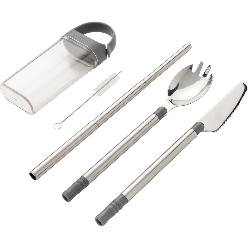 Set de couverts pratique dans une boîte de rangement. Facile à emporter partout et remplace donc les couverts jetables. Un bon choix écologique!