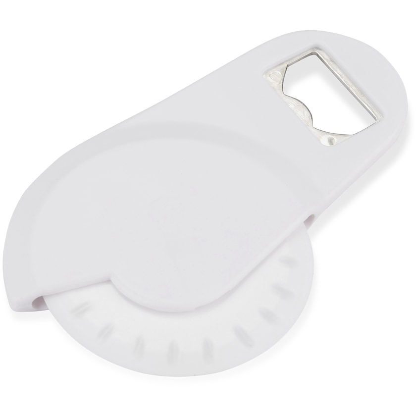 Couteau à pizza combiné avec ouvre-boîte. Un produit amusant pour la soirée pizza spontanée entre amis.