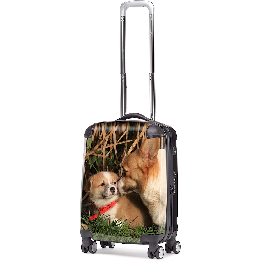 Valise de haute qualité avec votre imprimé sur toute la face avant. La Canberra est fabriquée en polycarbonate, et est à la fois légère et anti-choc. La valise a 8 roues et un verrou TSA. À l'intérieur se trouvent des poches de rangement, des sangles de serrage et un sac à linge. La valise peut être agrandie jusqu'à 25%. L'impression est réalisée sur un papier photo placé derrière une surface transparente protectrice. La valise est livrée avec 2 ans de garantie.