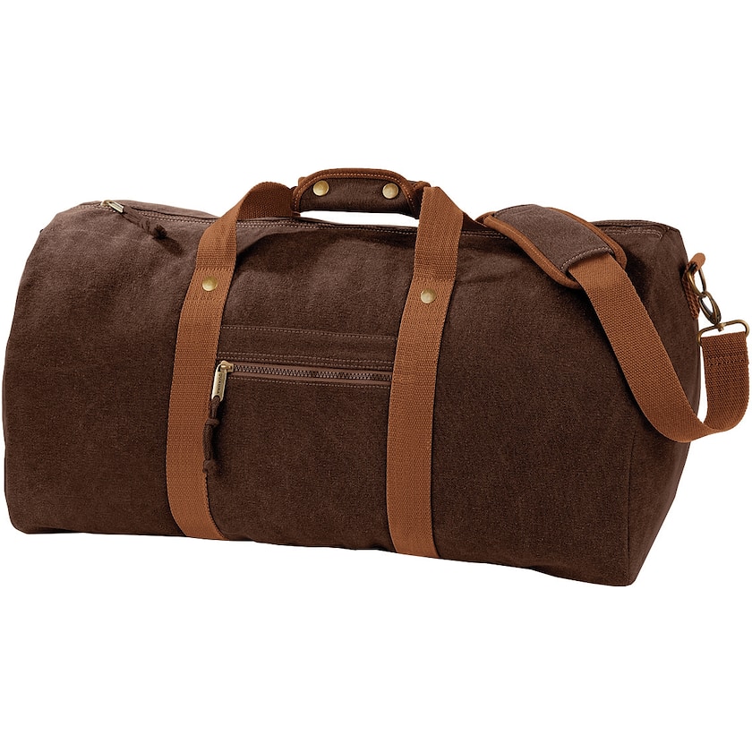 Sac pour le week-end en toile de coton épaisse. Le sac possède un compartiment à fermeture éclair sur le devant, et une poche intérieure pour objets de valeur. Le sac possède des détails en métal couleur laiton. Les bretelles sont réglables et amovibles. Le fond est renforcé pour une meilleure rigidité.