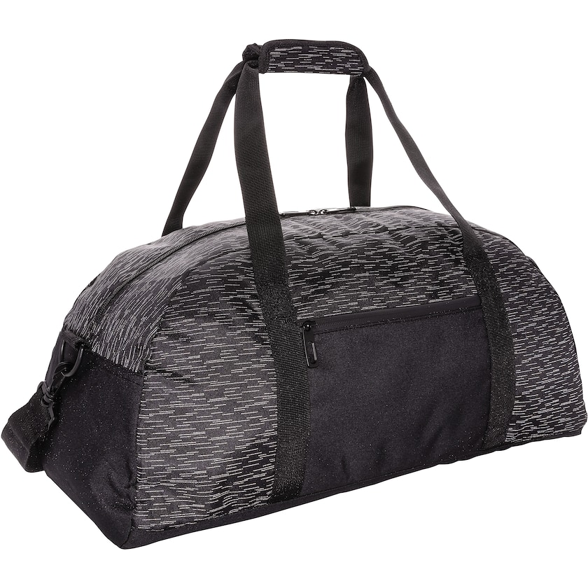 Sac de week-end avec motif réfléchissant intégral. Le sac est fabriqué en rPET, c'est-à-dire en bouteilles PET recyclées. Sur le devant se trouve une grande poche de rangement, et deux poches filets à l'intérieur.