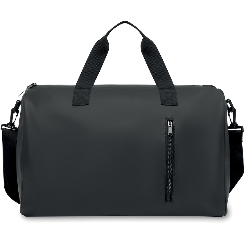 Sac week-end avec poche avant. La doublure est en matière recyclée. La bandoulière est réglable et amovible.