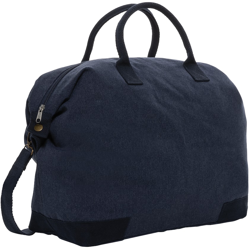 Sac de week-end en toile de coton recyclé. Le sac est doté d'un compartiment principal et d'une bandoulière. Les détails sont en laiton somptueux.