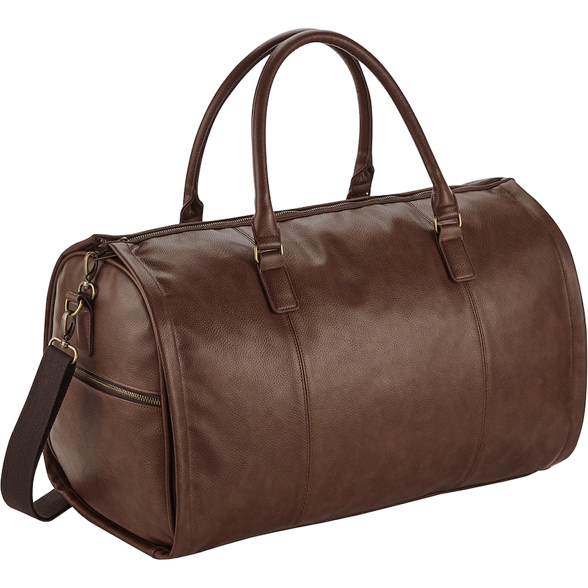 Sac week-end haut de gamme en cuir synthétique. Le sac est équipé d'un système smart qui permet de transporter facilement des costumes et autres vêtements délicats. Le sac possède un compartiment pour chaussures et des poches de rangement.
