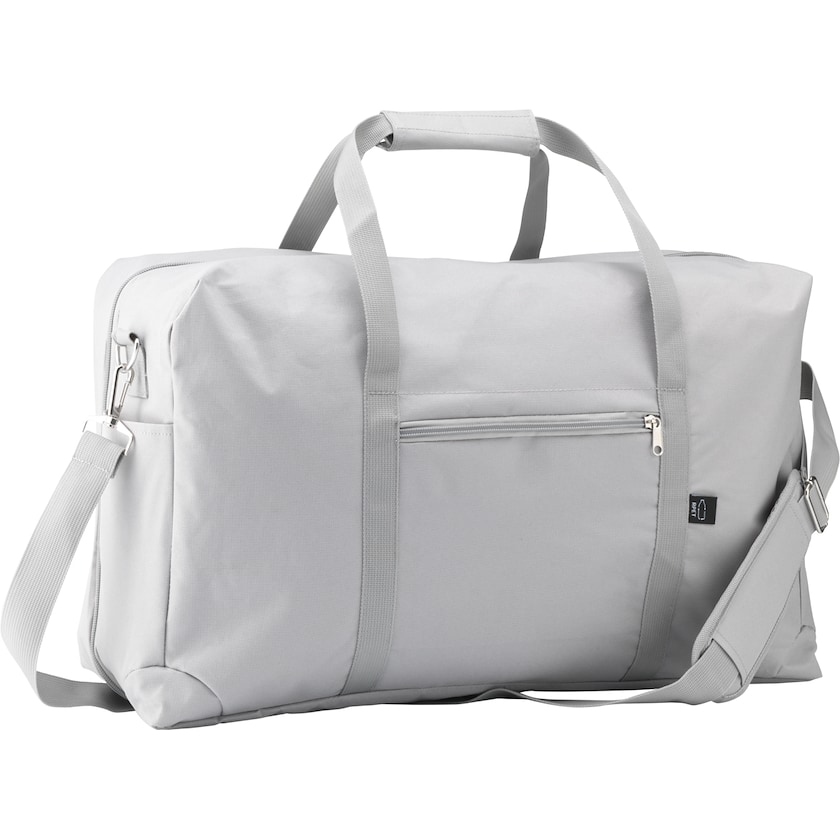 Sac week-end haut de gamme en matériau écologique. Le Draper est fabriqué en bouteilles PET recyclées. Le sac peut être ouvert complètement, pour faire son sac plus facilement. En plus du compartiment principal, le sac comporte deux comparitments à fermeture éclair séparés. À l'intérieur, un compartiment séparé permet de transporter en toute sécurité un ordinateur portable 13 pouces. La bandoulière est amovible. Personnalisation par impression monochrome uniquement.