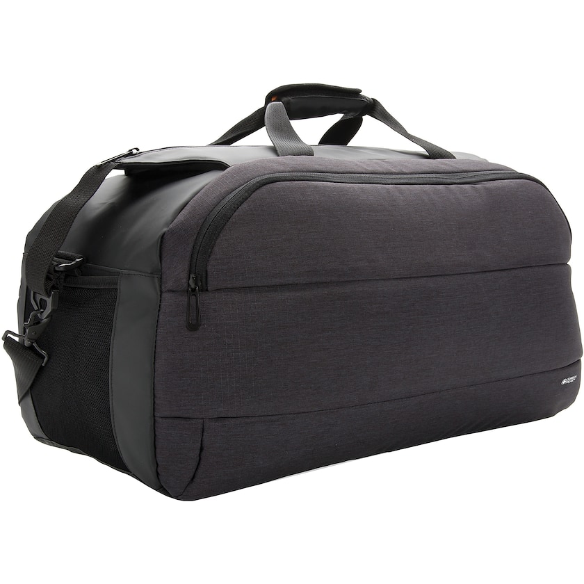 Sac de week-end Swiss Peak moderne. Le sac possède un compartiment principal ainsi qu'une poche de rangement sur le devant. Sur l'un des côtés du sac, une poche permet de ranger une bouteille d'eau.