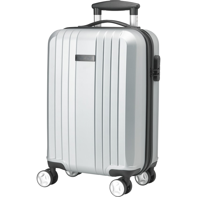 Petite valise à roulettes au design élégant. La Forbach a quatre roues et une contenance de 28 litres. La personnalisation est réalisée par gravure laser sur la plaque sur le devant de la valise.