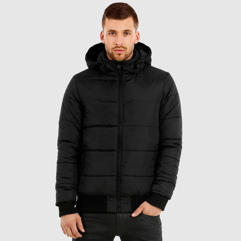Veste d'hiver matelassée avec capuche et intérieur de couleur contrastante. La veste est fabriquée en Polyester 300T pour une résistance efficace au vent et aux intempéries. La veste possède deux poches extérieures à fermeture éclair ainsi qu'une poche intérieure. De plus, l'extrémité des manches et la taille sont équipées d'élastiques et la veste comporte un col droit et une capuche amovible. Également disponible en version version femme.