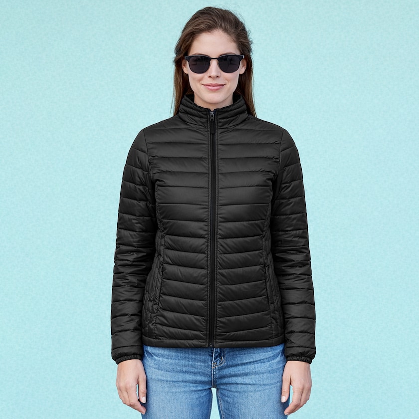 Veste femme personnalisable par broderie et légèrement rembourrée, pour une utilisation continue tout au long de l'année. La Zepelin Jacket possède une coupe légèrement ajustée et un design soigné. La veste est coupe-vent et imperméable, fabriquée en Polyester 300T, un matériau hydrofuge. La doublure de la veste est en polyester. Également disponible en version version homme.