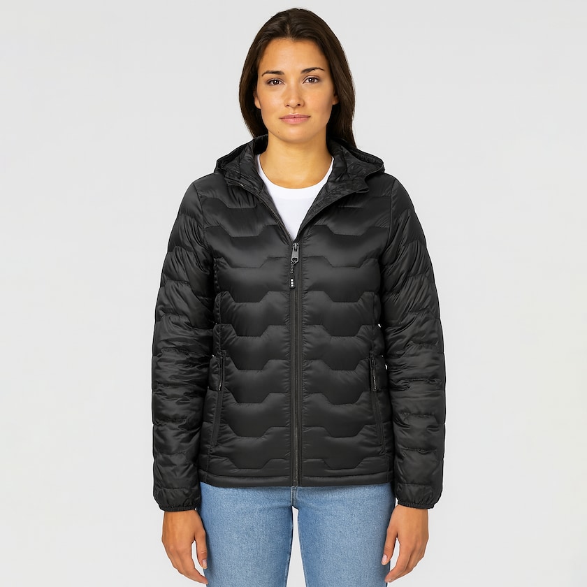 Veste d'hiver pour femme entièrement réalisée en matière recyclée. La veste a un magnifique tissu matelassé en nylon recyclé. Les poches latérales sont équipées d'une fermeture éclair. Tous les détails, comme les fermetures éclair, sont issus de matériaux recyclés. La doublure est composée à 90 % de duvet recyclé et à 10 % de plumes recyclées. La veste est certifiée GRS. Une veste d'hiver luxueuse et respectueuse de l'environnement. Également disponible en version version homme.
