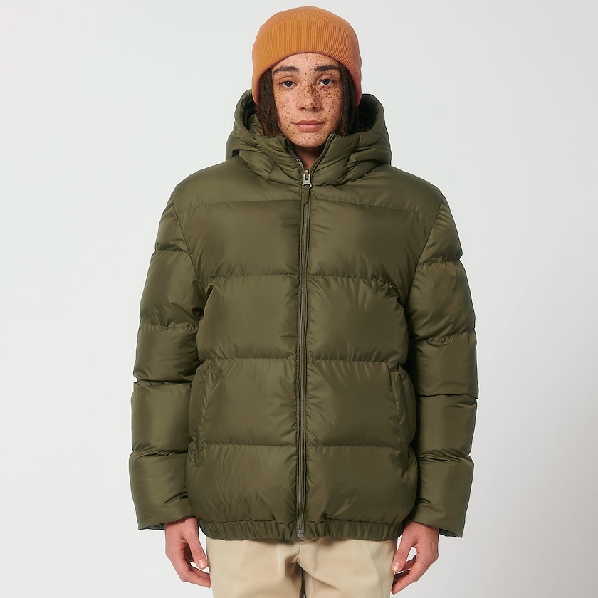 Veste matelassée en polyester recyclé. La veste et sa capuche sont confortablement matelassées. Les poches sont équipées de fermetures éclair. La veste comporte une troisième poche, intérieure, également à fermeture éclair.