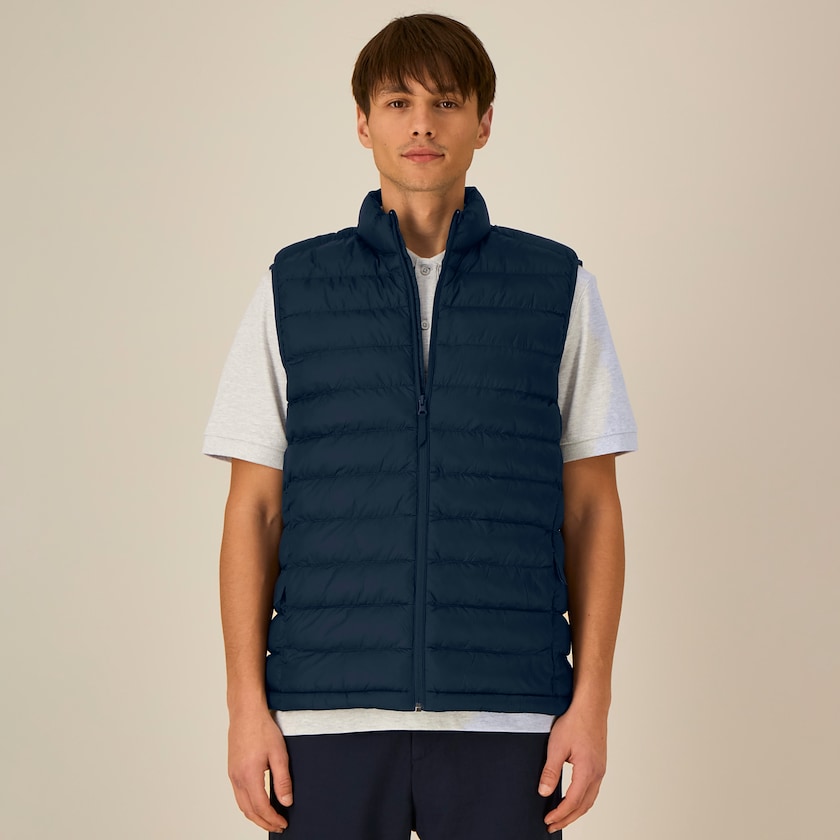 Gilet rembourré de Stanley & Stella. Le gilet est doté d'une couche de surface déperlante et de poches zippées sur les côtés. Également disponible en version version femme.