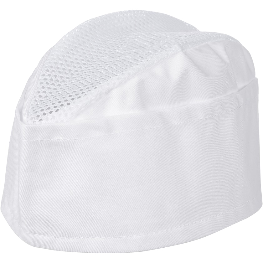 Toque de boulanger classique. La toque est en coton, sauf le filet sur le dessus qui est en polyester. La toque blanche peut être lavée en machine jusqu'à 60 degrés et la noire jusqu'à 40 degrés.