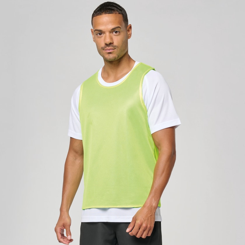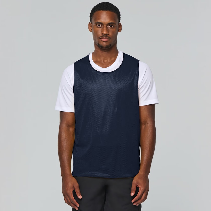 Débardeur de sport réversible pour adultes. Le débardeur est fabriqué en tissu résistant 100% polyester. Disponible en deux tailles. Un bon choix pour vous qui recherchez un débardeur de sport de haute qualité.